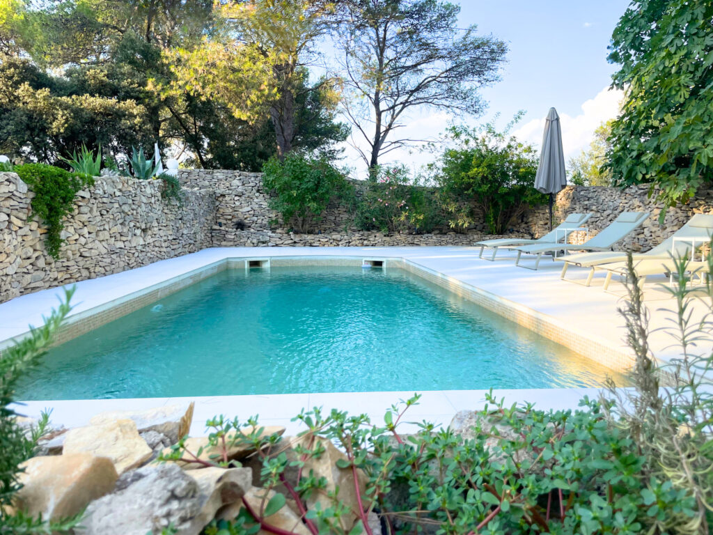 La piscine du Mazet Mahistre, de 7 x 3,5 mètres, est un véritable havre de paix. Entourée d’une plage confortable équipée de transats élégants, elle offre un cadre idéal pour se détendre sous le doux soleil de Provence. Les parasols généreux permettent de se protéger des rayons tout en profitant pleinement du cadre paisible. Que ce soit pour un moment de relaxation après une balade dans les environs ou pour un après-midi farniente, cet espace est conçu pour vous offrir tout le confort et le calme dont vous rêvez. Un véritable atout pour votre séjour.