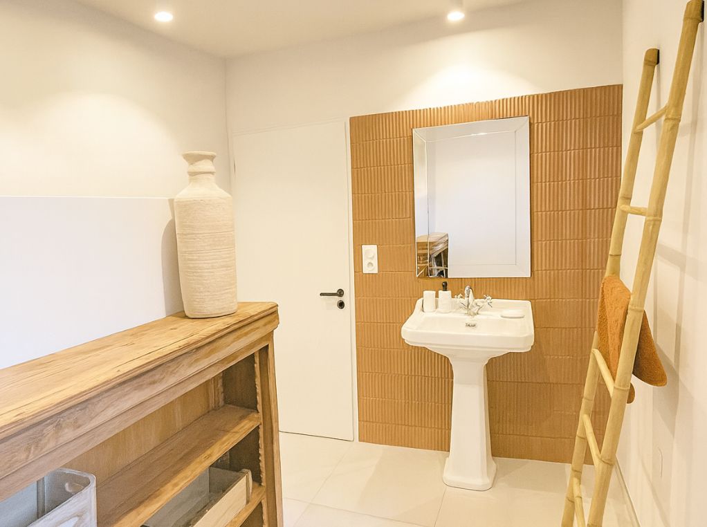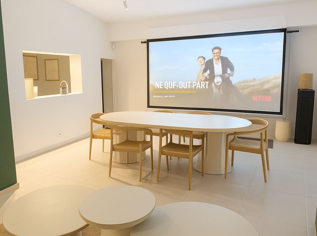 Pour vos soirées détente ou les moments en famille, le salon TV propose un large canapé quatre places et un écran de cinéma électrique permettant de profiter de vos films et séries préférés sur une image géante de 240 cm. Cet espace confortable est complété par un coin bureau, idéal pour travailler en toute tranquillité. La maison est équipée d’une connexion fibre très haut débit, garantissant un usage fluide et agréable, que ce soit pour le télétravail, les loisirs ou le streaming.